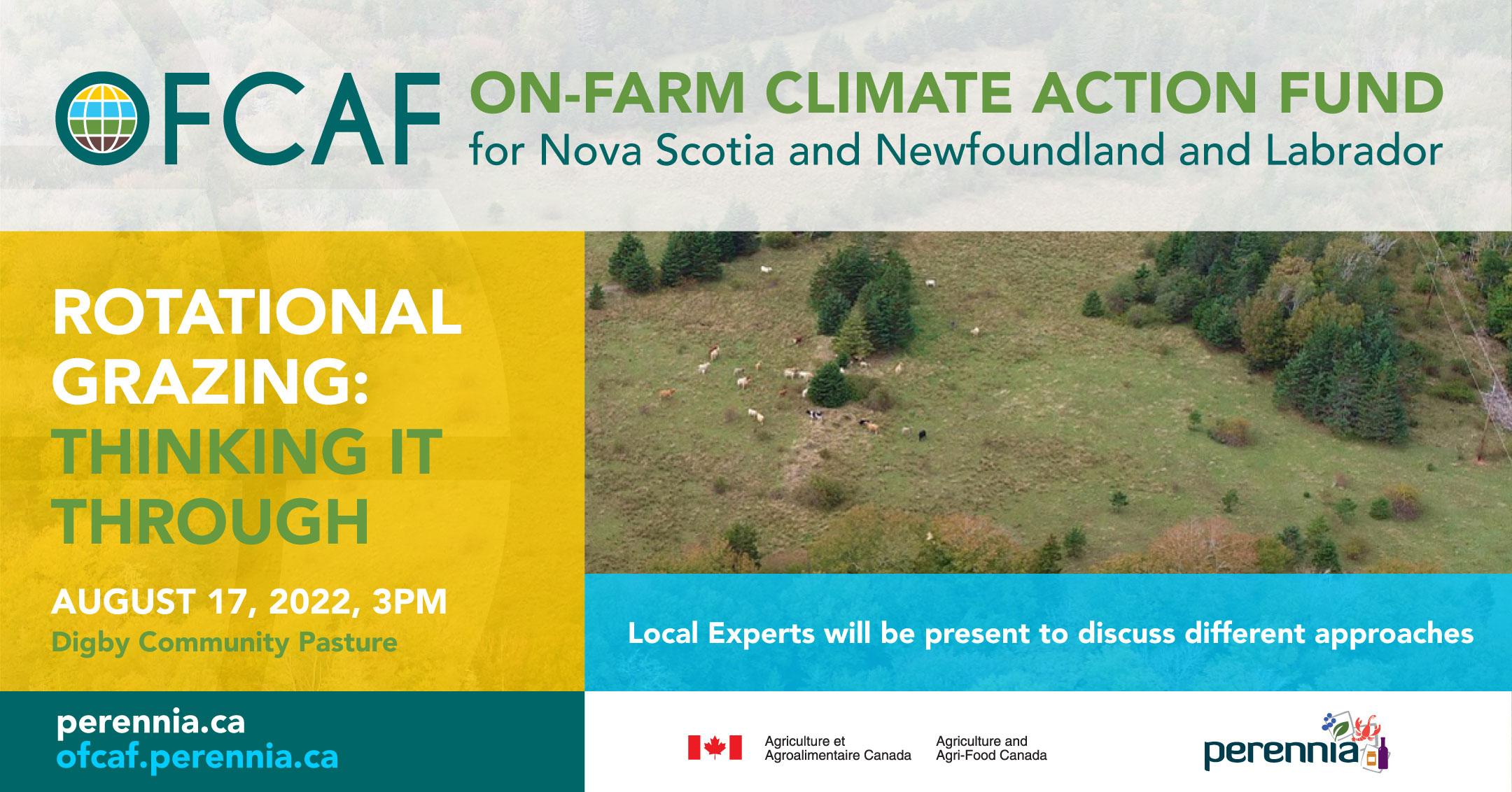 Upcoming field walk at the Digby Pasture! Rotational grazing: thinking it through. Please join Perennia Extension staff for a hands-on workshop on August 17, 2022 at 3:00 to learn how to develop a rotational grazing system and improve pasture